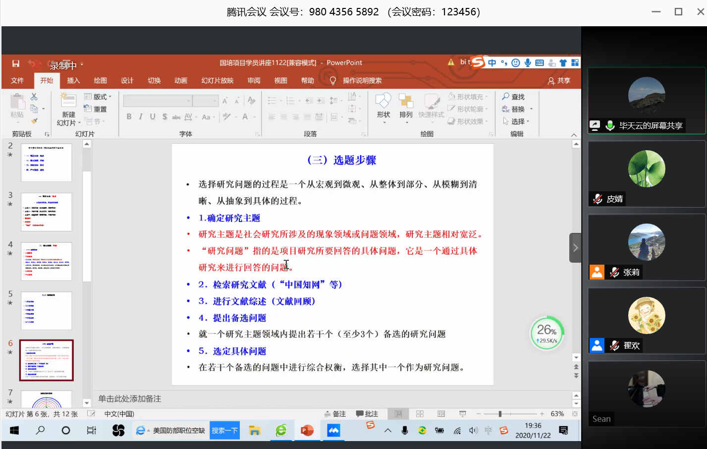 11月22日晚,云岭学者、博士生导师、毕天云校长通过腾讯会议直播的方式,为学院全体教职工开展了《如何提高科研课题申报的质量》的讲座。